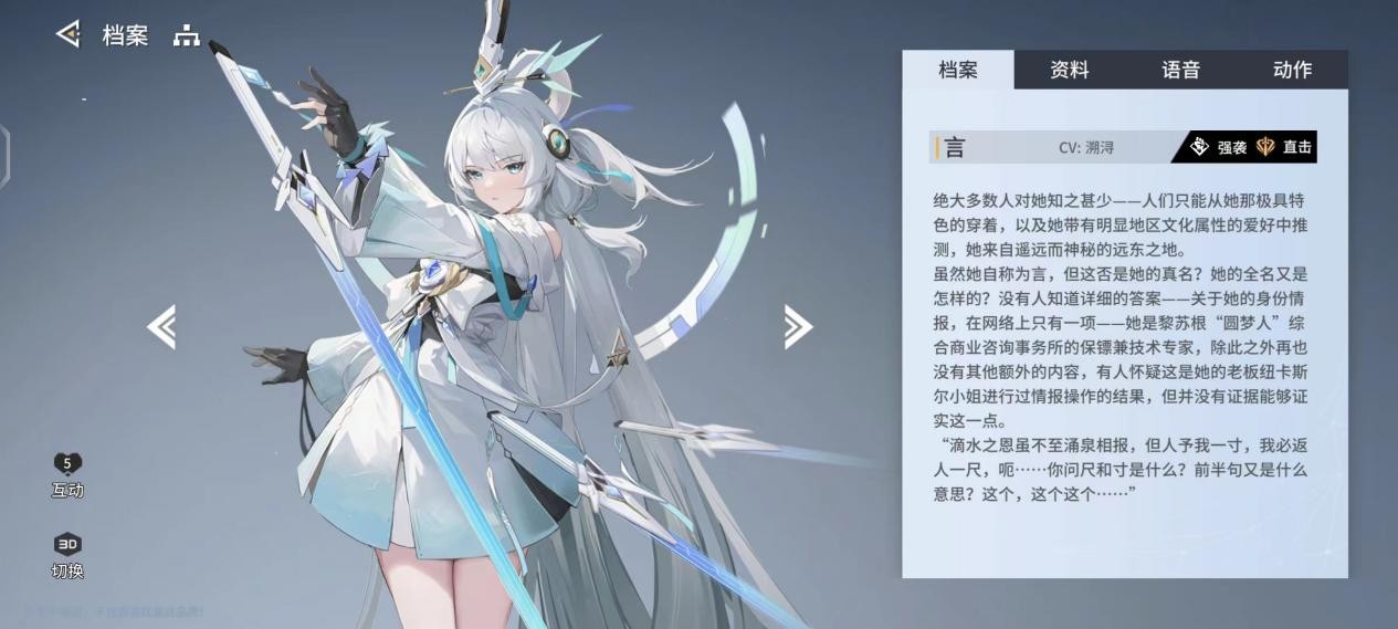 该角色的输出表现较为普通,非常依赖发育和练度。这一情况对新手来说有些棘手,若资源有限,抽取到0命0精即可。在萌新角色榜中,暂时将其定为A级。要是实在没有合适的主C角色,用它作为输出角色来开荒,倒也未尝不可。