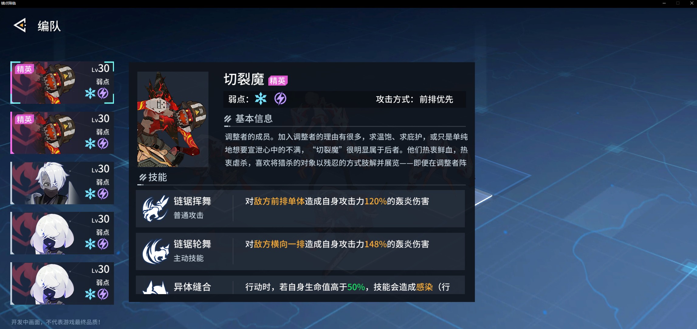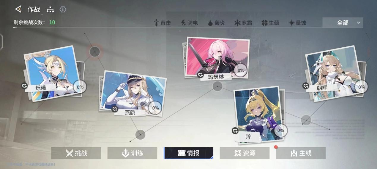 3. 组合为3直击和2轰炎 3轰炎和2量蚀 3驰电和2量蚀即可应对65%的地图,主打属性强袭定位的战员大多具备高额伤害、无视防御等优势。在前中期,即便未处于属性克制状态,也能打出高爆发伤害,相当于有一定的伤害保障。轰炎、驰电、量蚀这几个属性的战员,在对抗弱点属性敌人时,伤害依旧可观,而且技能面板数据普遍较高。然而,寒霜及生蕴属性目前存在战员数量不多、定位覆盖不全面、克制的敌方分布较少以及技能倍率不理想等不足,因此前期不太建议大量培养。