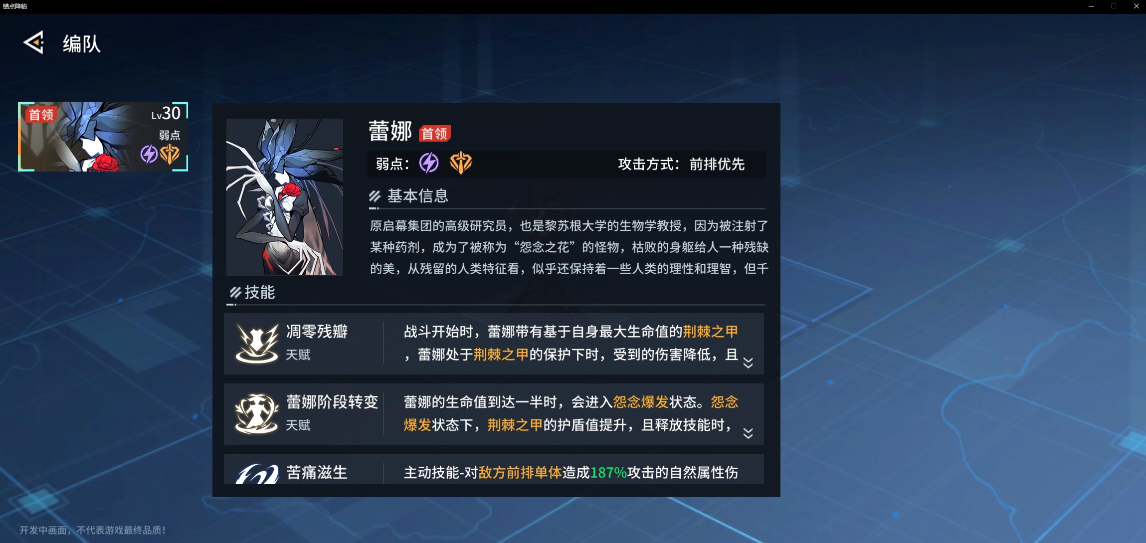 强度在线,她兼具优秀的单体输出能力与前排对群能力,这让她的战斗方式更为灵活。此外,她还自带吸血效果,能有效保障自身生存。