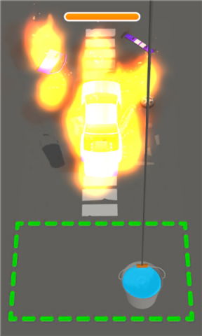 1、基础操作:借助触屏来操控水桶的角度与力度,精准地浇灭火源。