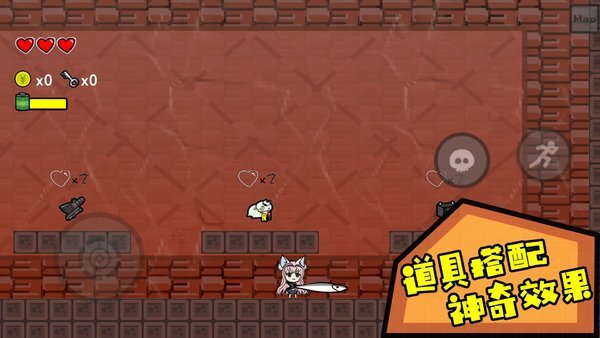 3、各类道具相互搭配,会呈现出截然不同的效果。持续深入至下一层,成功击败最终的boss。