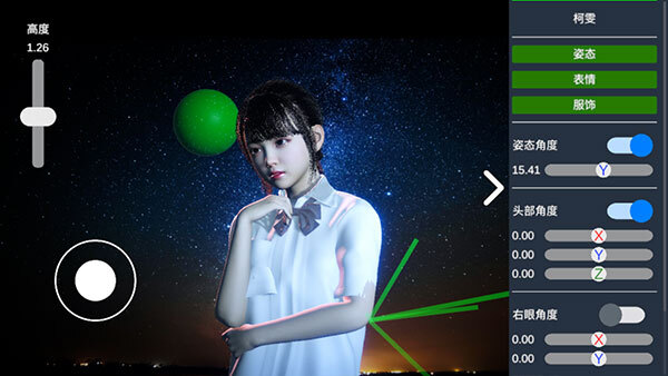 小编拿右侧的“模特”来举例,能够对它的姿态、表情和服饰进行调整。