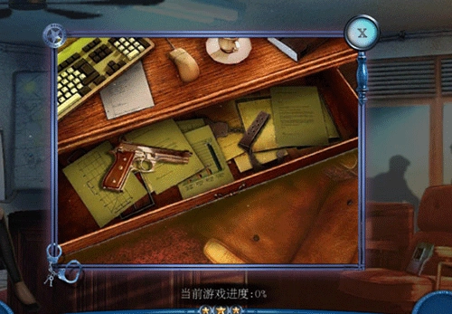 1、来到警察局的办公室,接起电话后与男警探和女灵媒苏珊交谈,从男警探那里获取保险柜密码。接着在咖啡杯旁拿起警车钥匙;从办公桌上拿到警徽,打开抽屉取出枪和子弹夹,将它们组合起来得到可使用的枪。