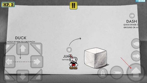 除了刚开始在地图界面会显示带方向键的虚拟键盘,打boss时这些按键都是隐藏的,所以你得记清楚除方向键之外其他键位的具体位置: