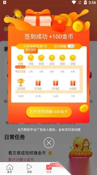 3、日常使用时,阅读文章、分享内容都能得到金币奖励,每小时还可以开启宝箱领取随机金币;