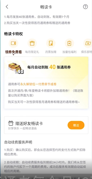 办理畅读卡不会直接给用户可使用的漫币,而是提供能兑换漫画章节的兑换券。这项服务更适合有大量漫画观看需求的用户,而仅追看其中一本漫画的用户则不太需要办理畅读卡。