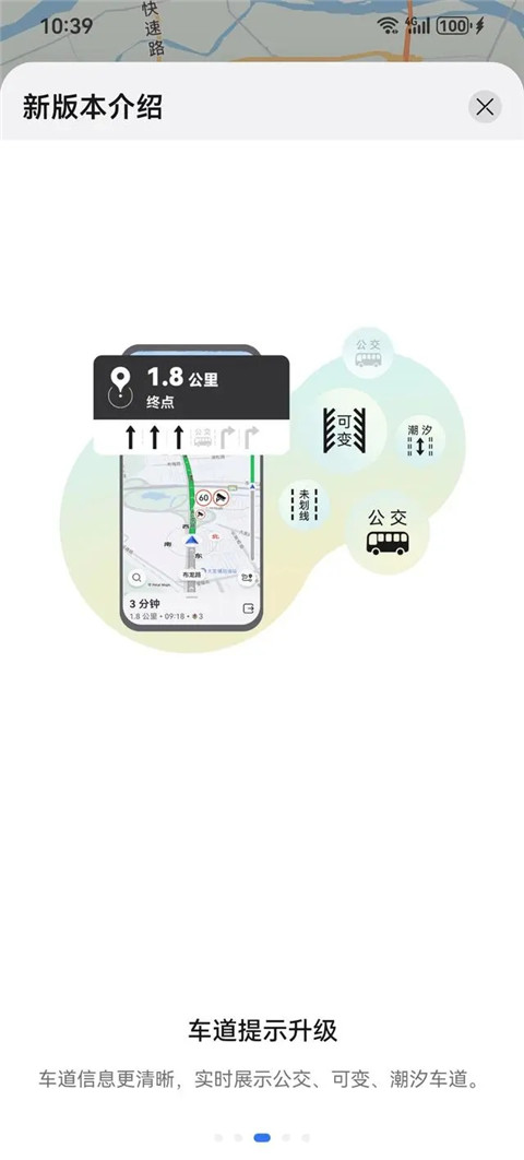 车道提示功能升级:能够实时呈现公交、可变以及潮汐车道的相关信息。