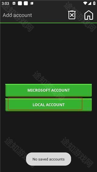 8、点击启动游戏后,会进入此界面,该界面提示我们没有账户,此时点击“LOCAL ACCOUNT”即可创建账户。