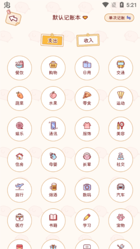1、采用卡通风格的界面画风设计,能让我们在记账时心情更为愉悦。