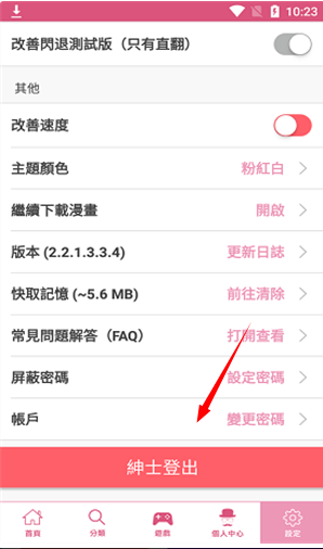 2、接着切换至个人页面,点击“绅士登出”便完成操作。