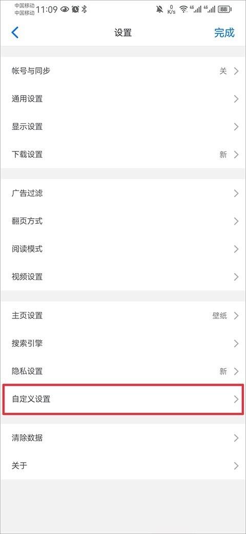 3、于设置页面中点击自定义设置