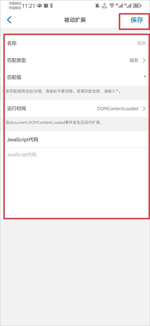 6、最后完善油猴插件代码等信息,点击保存即可。