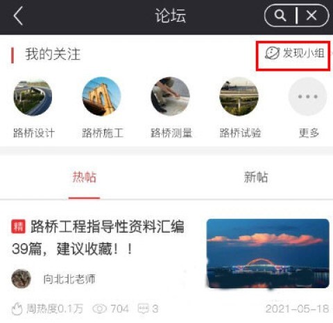 1、在主页点击【论坛】功能,找到右上角的【发现小组】,与志同道合的朋友一起学习和交流。
