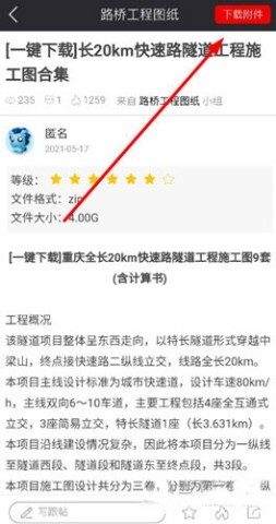 4、在图纸详情页面,点击右上角的【附件】按钮,记得开通E会员哦,开启更多特权。