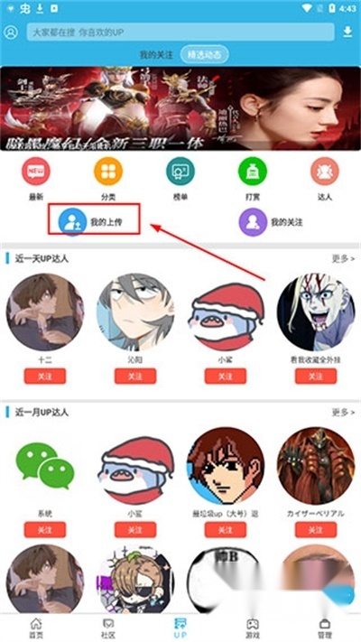 2. 点击【我的上传】。
