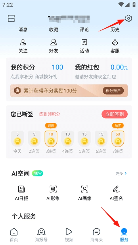 1、打开海报新闻,点击我的-右上角设置图标;