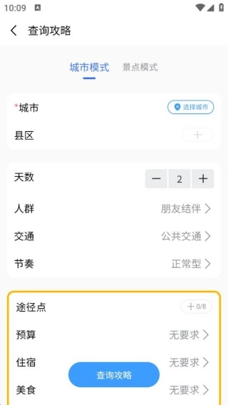 2、查询攻略时,提供城市模式与景点模式两种选择,便于大家更便捷地查看。