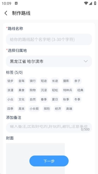 3、创建路线时,输入路线名称并选择归属地后,点击一键即可启动制作流程。