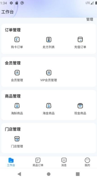 在首页就能看到订单管理、会员管理、商品管理等功能。