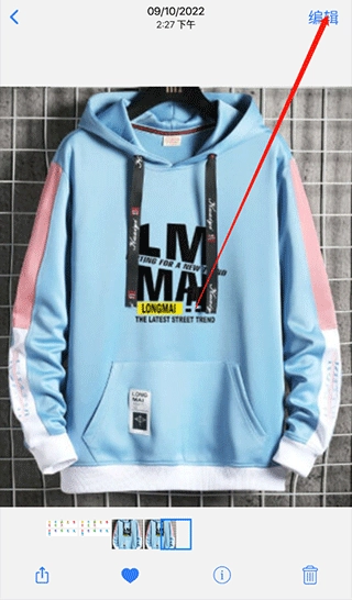 2、选中目标照片后,点击界面上方的【编辑】按钮,进入编辑界面。